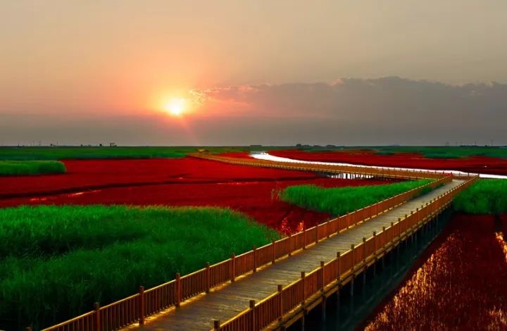不得不提的是盘锦的湿地美景,这里拥有世界上独一无二的“红海滩”,每当秋季来临,碱蓬草一片嫣红,如同火焰般燃烧在湿地的怀抱,这景象,宛如大自然的魔法,让人目不暇接,叹为观止!🌺
